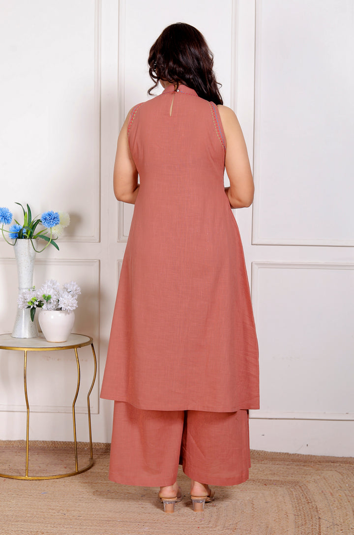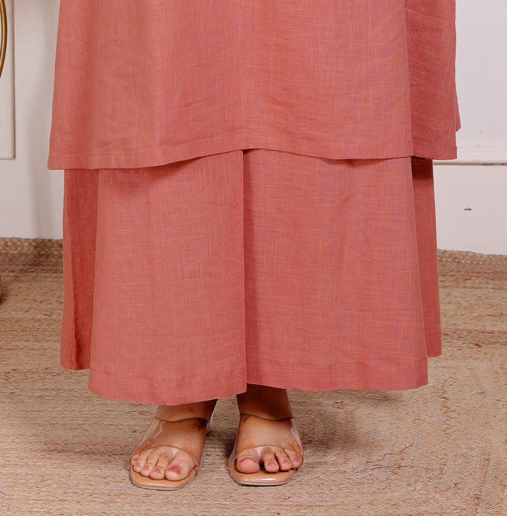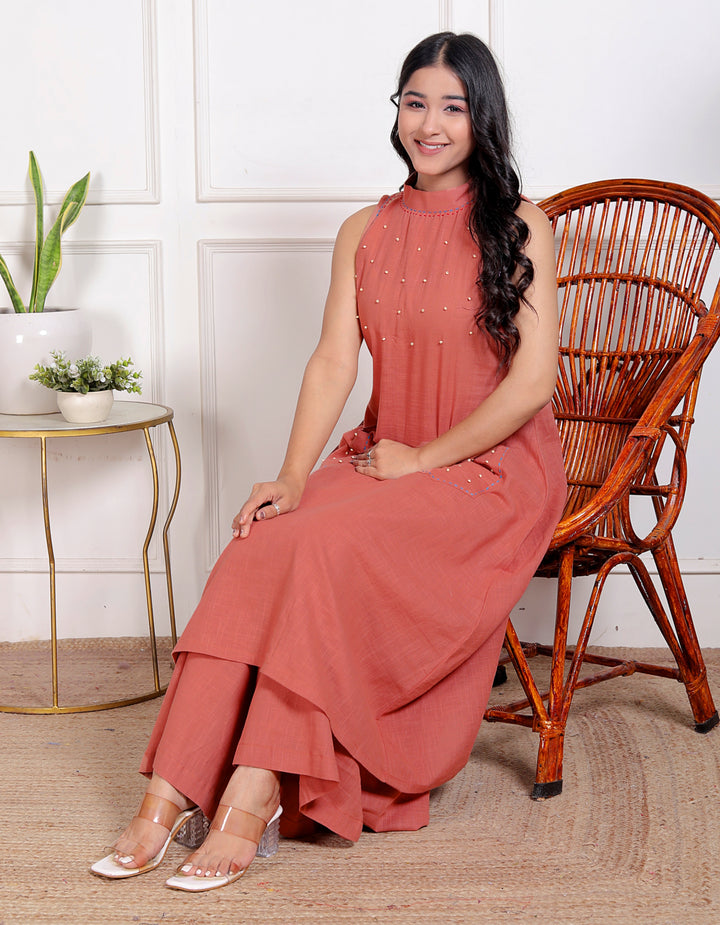 Peach Pink Halter Neck Kurta & Cotton Culottes